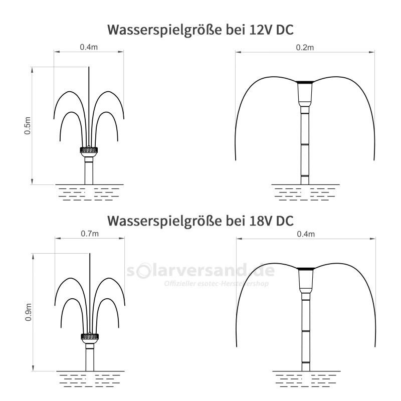 Ze čtyř přiložených výměnných trysek může být vytvořen vodotrysk různých tvarů. Výstup čerpadla je nastavitelný, čerpadlo pracuje v přímém režimu. Při nastavení hadičkou lze využít rovněž jako chrlič vody.