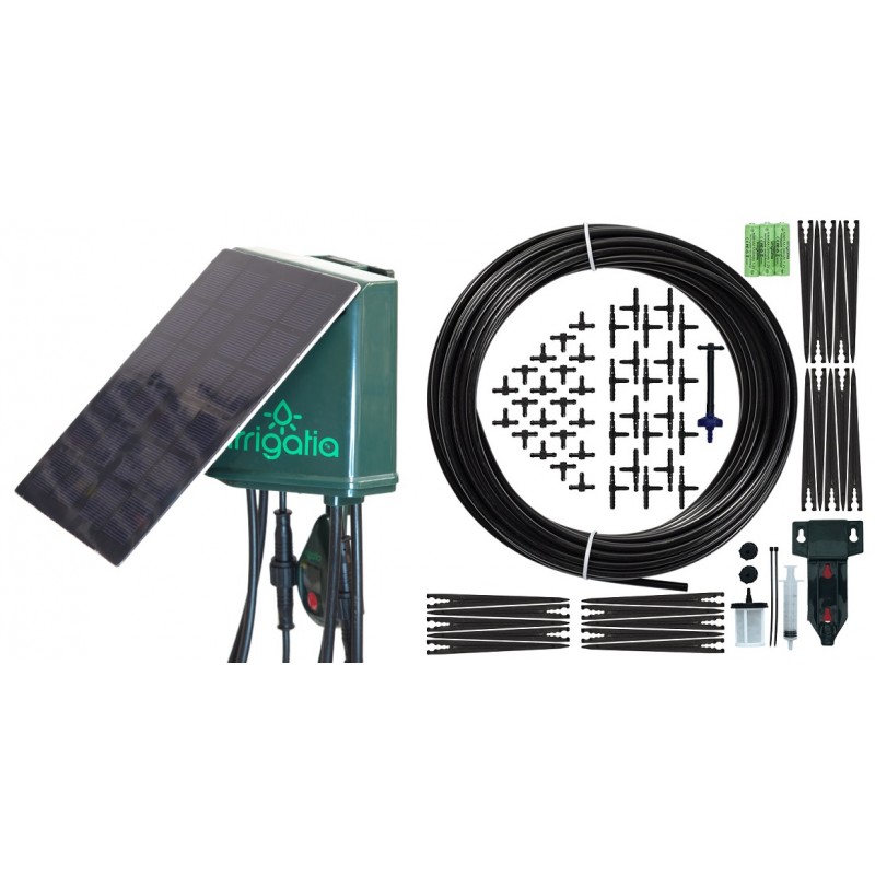 Kompletní automatický solární zavlažovací systém s čerpadlem, solárním panelem a elektronickým řízením. Čím více svítí slunce, tím více vody je dodáváno Vašim rostlinkám. Lze umístit do jakéhokoliv rezervoáru vody, např. sudu s dešťovou vodou.