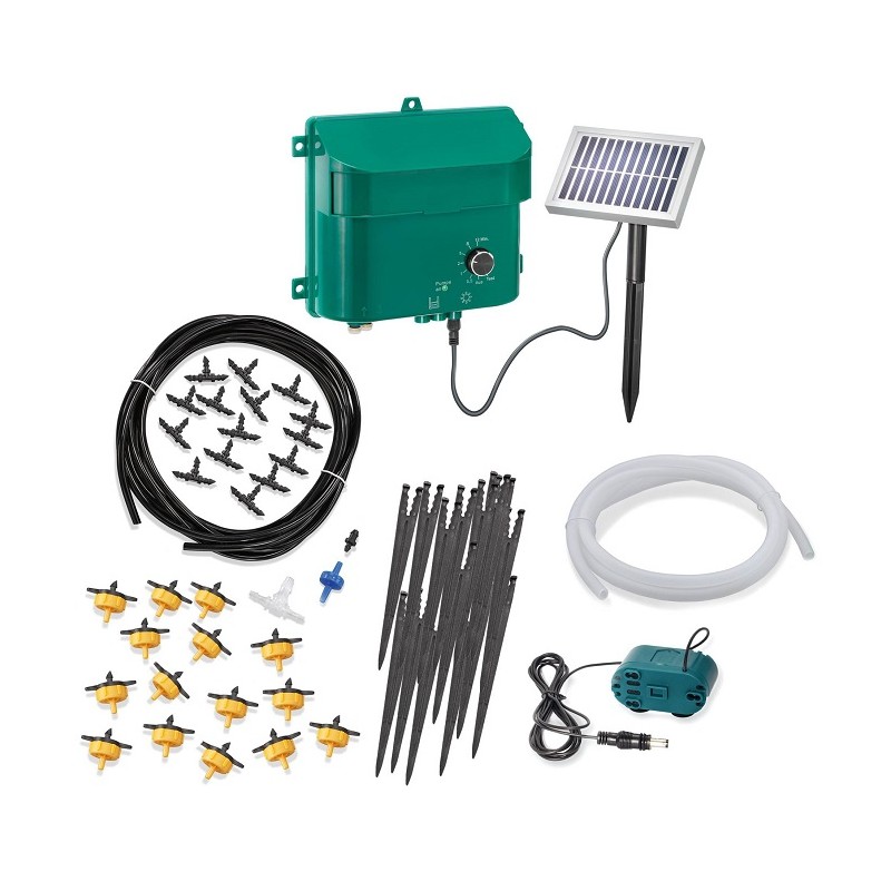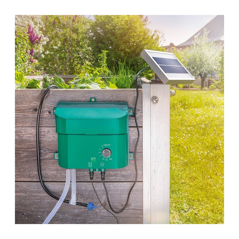 Praktický solární zavlažovací systém Esotec dodává Vašim záhonům, květináčům nebo rostlinám ve skleníku od nynějška automaticky vodu bez potřeby elektrické sítě.